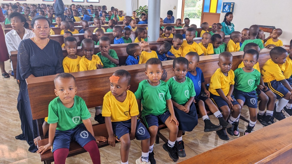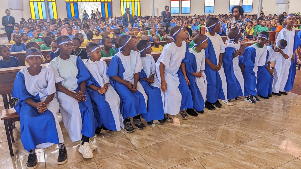 During his homily, Rev. Father Ntirenganya reminded the children that Jesus loves them and that they should love Him in return. He emphasized Jesus’ words, “Let the children come to me.” He said, “Jesus is merciful and loves children. We are called to have good hearts and to love Jesus because He loves us too.”